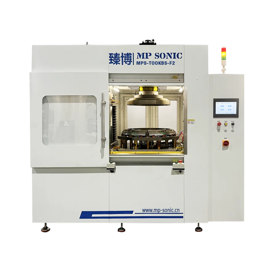 To solve above difficulty, MP Sonic developed MPS-T00KB Series equipment for the joining of balancer with method of spin welding. MPS-T00KB balancer welder applies servo motor system in with high torque output to achieves high welding ability. Servo system or servo controlled hydraulic system is applied to force the clamping of welding to ensure the welding strength.